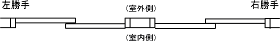 左右勝手(右勝手・左勝手)とは、建具(ドア・扉など)がどちら側に開くか・引くか、または丁番の位置がどちら側かという方向のことです。